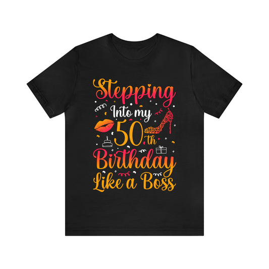 Stepping Into 50 Like a Boss, 50th Birthday Shirt