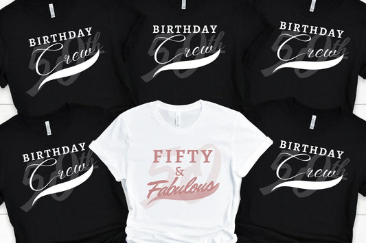50th Birthday Party Shirts – “Hello Fifty” & “Fifty Birthday Crew” Matching Group Tees | Custom 50th Celebration Shirts for Women