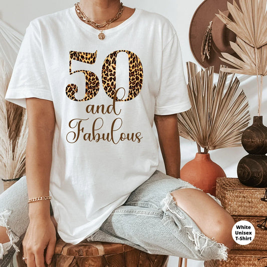 Leopard Fifty and Fabulous Shirt, 50th Birthday Shirt - Celebrate Your Milestone in Style!