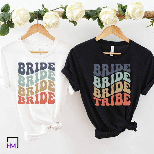 Bride & Bride Tribe Bachelorette Party Shirts, Retro 70s Themed Bachelorette Party Shirts