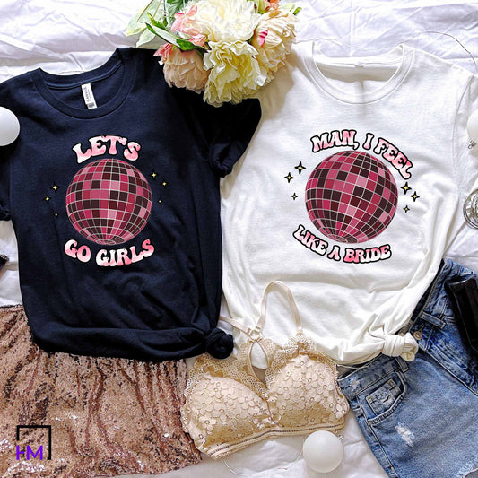 Man I Feel Like a Bride & Let's Go Girls, Disco Themed Bachelorette Party Shirts