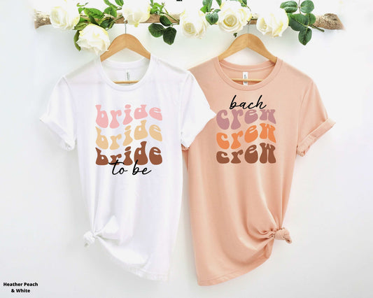 Retro Bride to Be & Bach Crew Bachelorette Party Shirts, Retro 70s Theme Bachelorette Party Favors