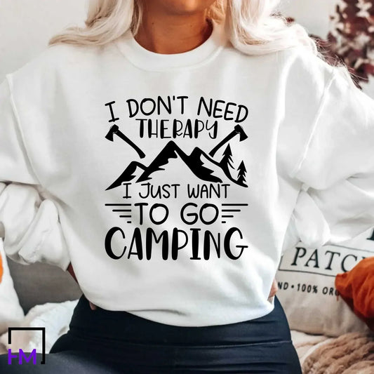 Camping Therapy Shirt, Happy Camper, Adventure Time, Camper Gifts for Women, Nature Lover Sweatshirt, Camping Presents, Mountain Hiking Tee