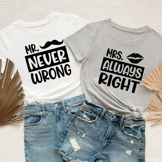 Mr. Wrong and Mrs. Right Funny Couples Shirts