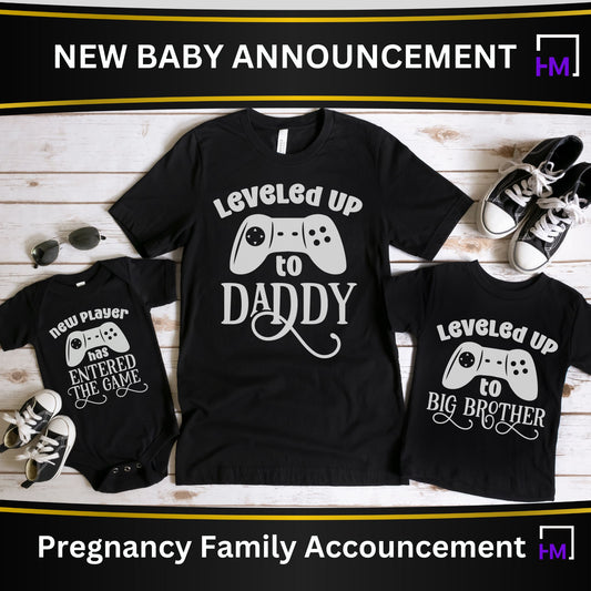 Pregnancy Reveal Shirts, Baby Announcement to Grandparents, Baby Shower Gifts, Video Game Family Matching T-shirts, 1st Time Parents