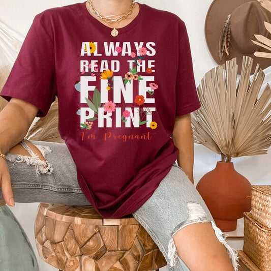 Always Read the Fine Print, I'm Pregnant, Funny Pregnancy Reveal Shirt, The Perfect Keepsake for Your Pregnancy