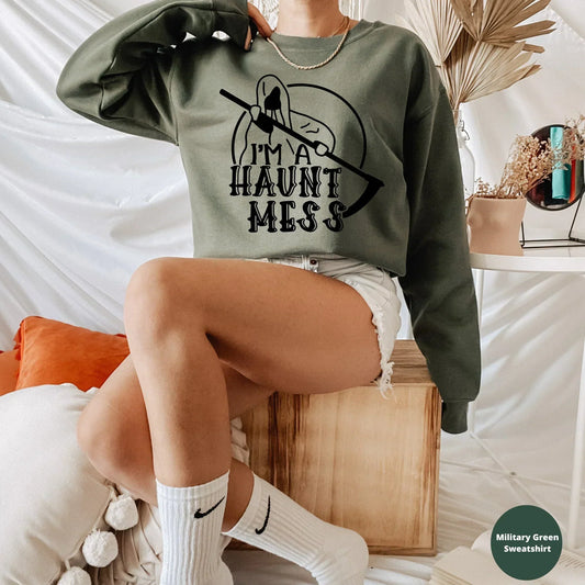 Halloween Sweatshirt, Haunt Mess, Funny Halloween Crewneck, Party T-Shirt, Cute Women's Hoodie, Witch Shirt, Trick and Treat, Vintage Tee