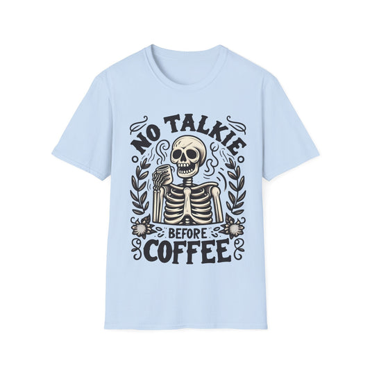 No Talkie Before Coffee Funny Skeleton T-Shirt