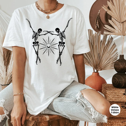 Halloween Sweatshirt, Gothic Tshirt, Dancing Skeletons, Fall Sweater, Skeleton Shirt, Mystical Women's Hoodie, Gift for Her, Fun Party Tee