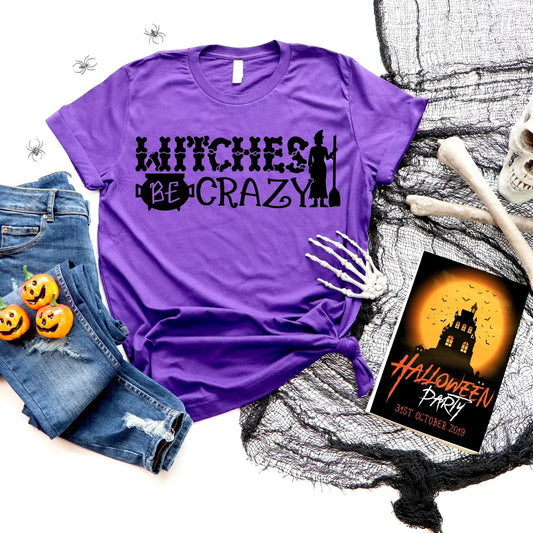 Halloween Sweatshirt, Witches Be Crazy, Witch Shirt, Halloween Crewneck, Funny Halloween Party, Cute Halloween Shirt, Halloween Cat Hoodie