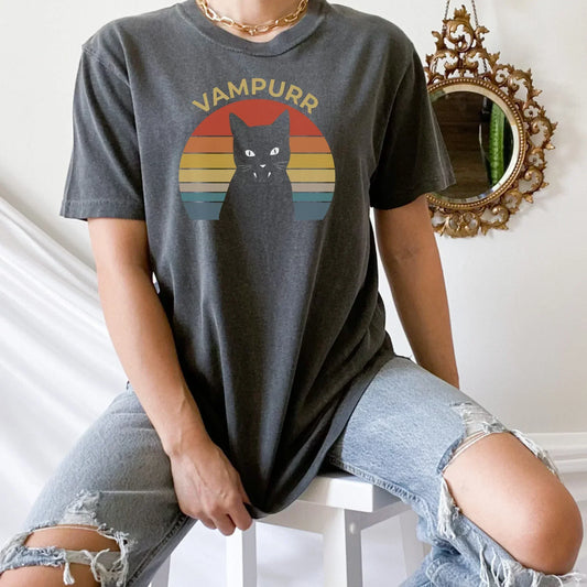 Comfort Colors, Halloween Cat Shirt, Fall Apparel, Pumpkin Shirt, Cute Retro Halloween Shirt, Witch Shirt, Vintage Spooky Tshirt