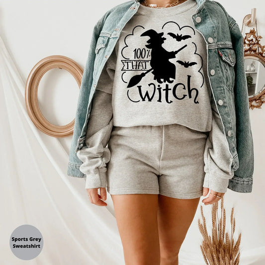 100% That Witch Halloween Sweater, Halloween Crewneck