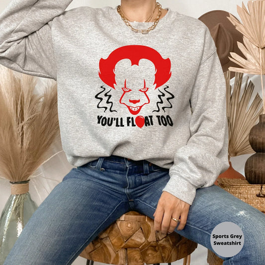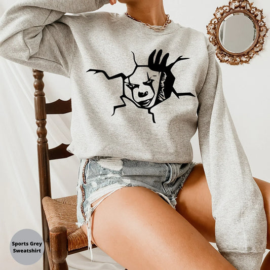 Horror Movie Sweatshirt, Pennywise Shirt, IT Tshirt, Halloween Crewneck, Trick or Treat, Cute Party T-Shirt, Gift for Her, Gift for Him