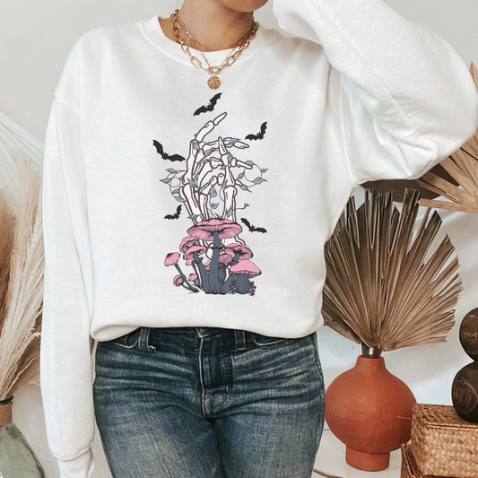 Halloween Shirt, Pastel Gothic Shirt, Mushroom Shirt, Halloween Sweatshirt, Bats Shirt, Skeleton Shirt, Magical Witchy Vibes, Goth Clothing