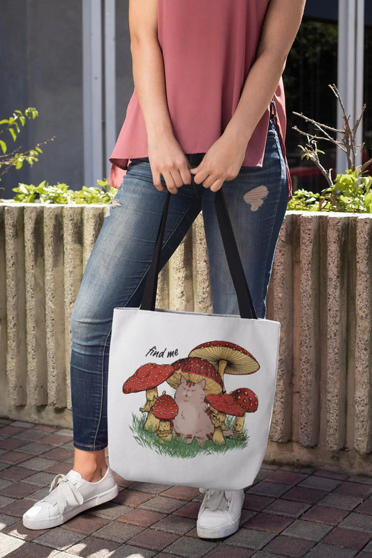 Mushroom Tote Bag, Mushroom Bag, Cat Tote Bag, Cottagecore Lovers Gifts, Dark Academia Reusable Canvas Bag, Hippie Cat Mom Gift, Psychedelic