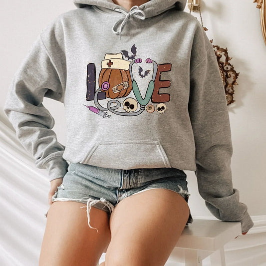 LOVE Halloween Nurse Shirt, Nursing Student Shirt, Nurse Gift, ER Nurse Sweatshirt, Spooky Nursing Hoodie, Gift for Nurse, Nurse practitioner