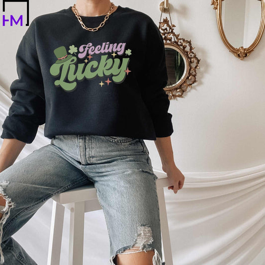 Feeling Lucky, Funny Retro St. Patty's Day Shirt, Lucky Clover Shirt, Shamrock Clover Shirt, Funny St. Patrick's Day Shirt