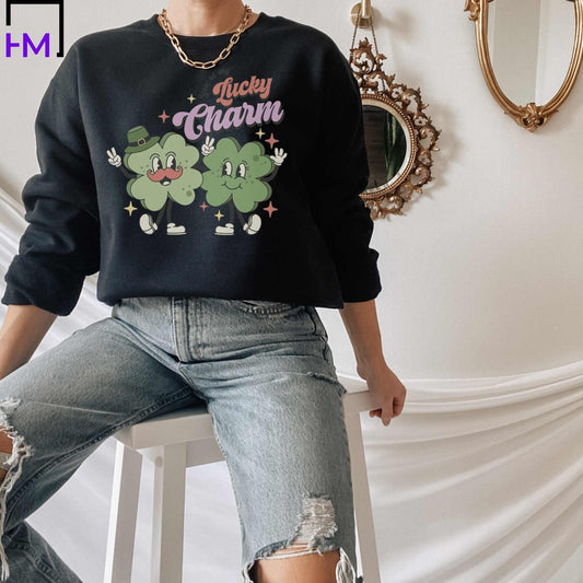 Lucky Charm Four Leaf Clover Retro St. Patty's Day Shirt, Lucky Clover Shirt, Shamrock Clover Shirt, Funny St. Patrick's Day Shirt