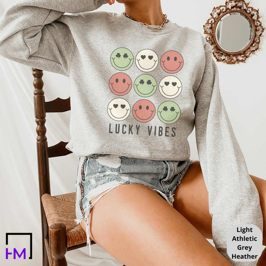 Lucky Vibes, Funny Retro St. Patty's Day Shirt, Lucky Clover Shirt, Shamrock Clover Shirt, Funny St. Patrick's Day Shirt