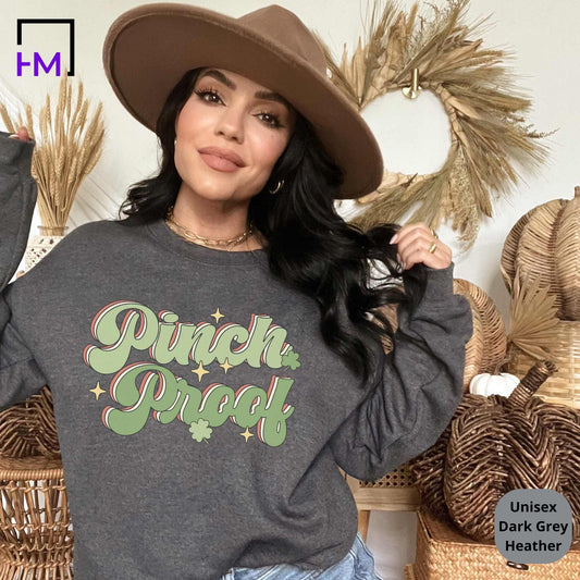 Pinch Proof Funny Retro St. Patty's Day Shirt, Lucky Clover Shirt, Shamrock Clover Shirt, Funny St Patrick Day Shirt