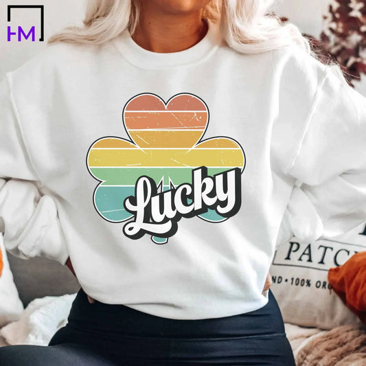 Retro Shamrock Shirt, St Patricks Day Shirt, Irish Women Tee, Patricks Lucky Shirt, Vintage Shamrock TShirt, Irish Shirt, Rainbow Lucky Top