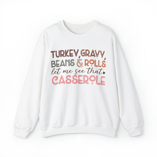 Turkey, Gravy Beans and Rolls Let Me See that Casserole Thanksgiving Sweatshirt