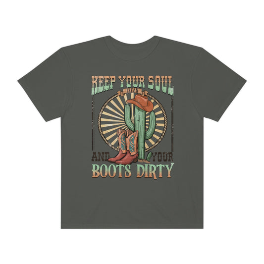Keep Your Soul and Boots Dirty Western Shirt, Comfort Colors Funny Western Graphic Tee