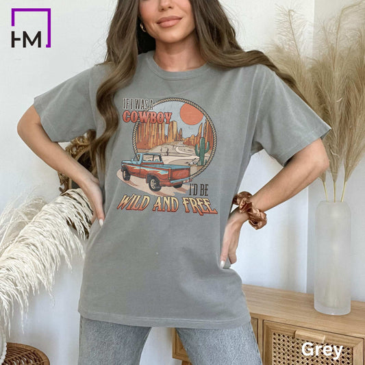 Wild and Free Cowboy Shirt, Comfort Colors Western Graphic Tee for Cowboys and Cowgirl T-Shirt