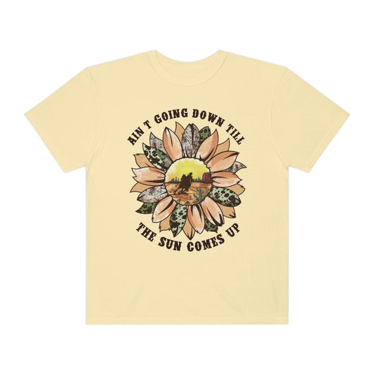 Ain't Going Down Til the Sun Comes Up, Comfort Colors Funny Western Graphic Tee | Sunflower Cowgirl T-Shirt