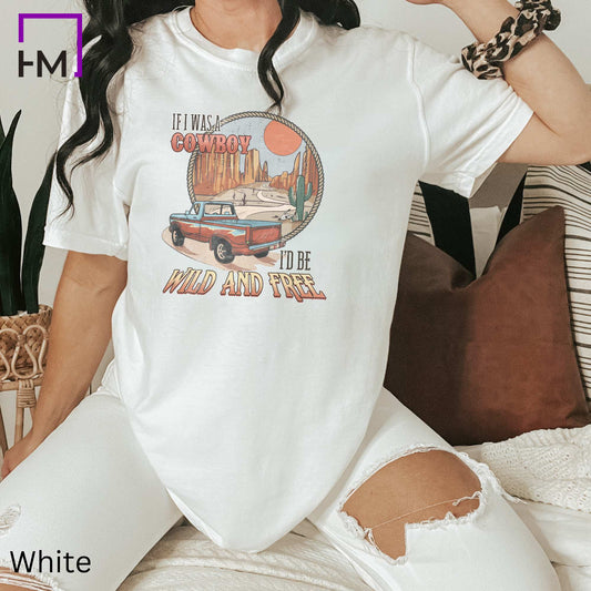 If I were a Cowboy, I'd Be Wild and Free, Stylish Comfort Colors Western Graphic Tee | Cowgirl T-Shirt